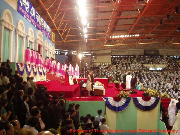 The entrance of the True Parents, who are Cosmic King and Queen, officiating over this fourth stage of the 400 million couples Blessing. It was a great privilege to be able to see them and to be in the same environment with them.